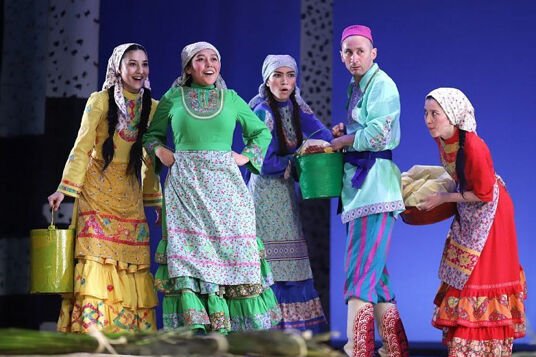 Драматические действия спектакля переплетаются с народными играми, плясками и обычаями. В музыкальной основе спектакля – песни и музыка, сочиненная композитором Нуром Даутовым в исполнении оркестра театра.