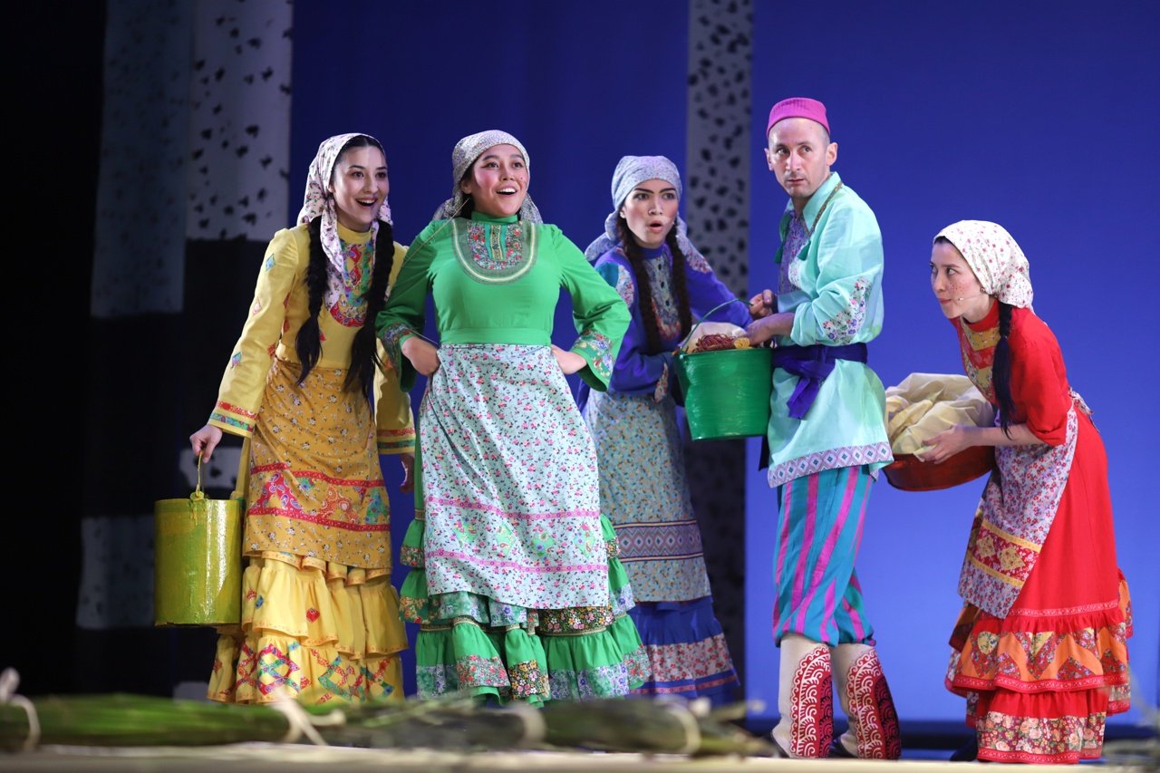 Драматические действия спектакля переплетаются с народными играми, плясками и обычаями. В музыкальной основе спектакля – песни и музыка, сочиненная композитором Нуром Даутовым в исполнении оркестра театра.