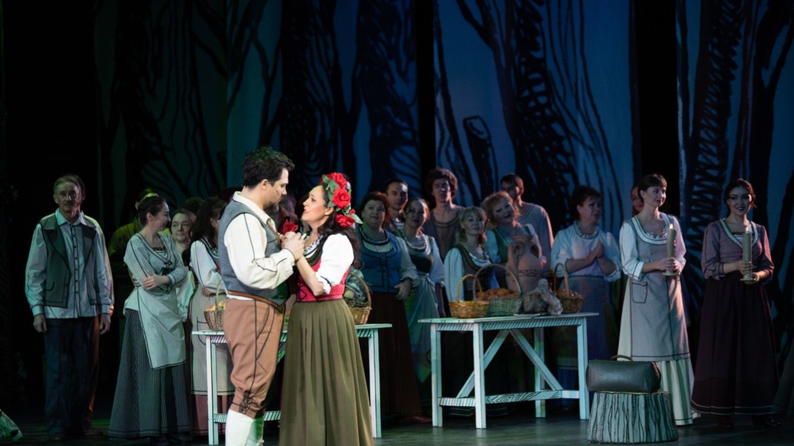 Анна влюбляется в юношу Роберто. Тот узнаёт, что унаследовал состояние от далёкой родственницы, которая умерла в городе. Молодая пара получает благословение отца Анны на скорое венчание. Происходит обряд обручения по старинному обычаю в лесу у костра. Анна передаёт жениху розу, которая будет напоминать ему о ней.